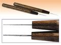 極細のステンレス製の螺旋状の刃が付いたブローチ用ツールです。0.5mm径と、0.84mm径の2本入り。木材やプラスチックの穴やくぼみをきれいに仕上げられます。
